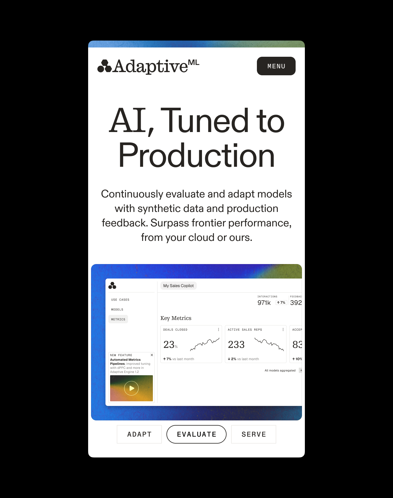 AdaptiveML is on a mission to democratize production-tuned AI for every enterprise team.