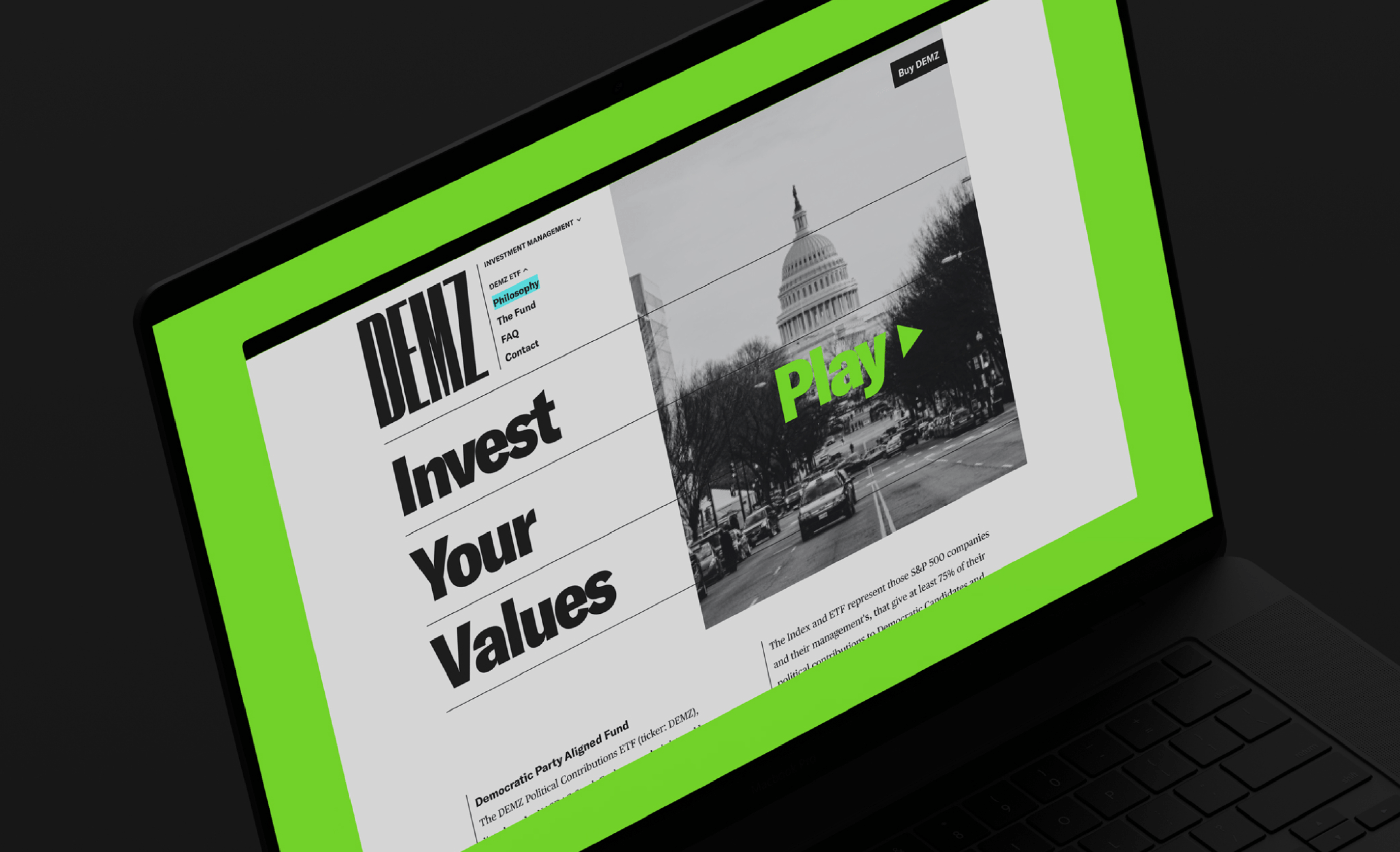 DEMZ, or The Democratic Large-Cap Core Fund, is an ETF that allows individuals and institutions to easily invest in companies aligned with the Democratic Party and grow their personal wealth.