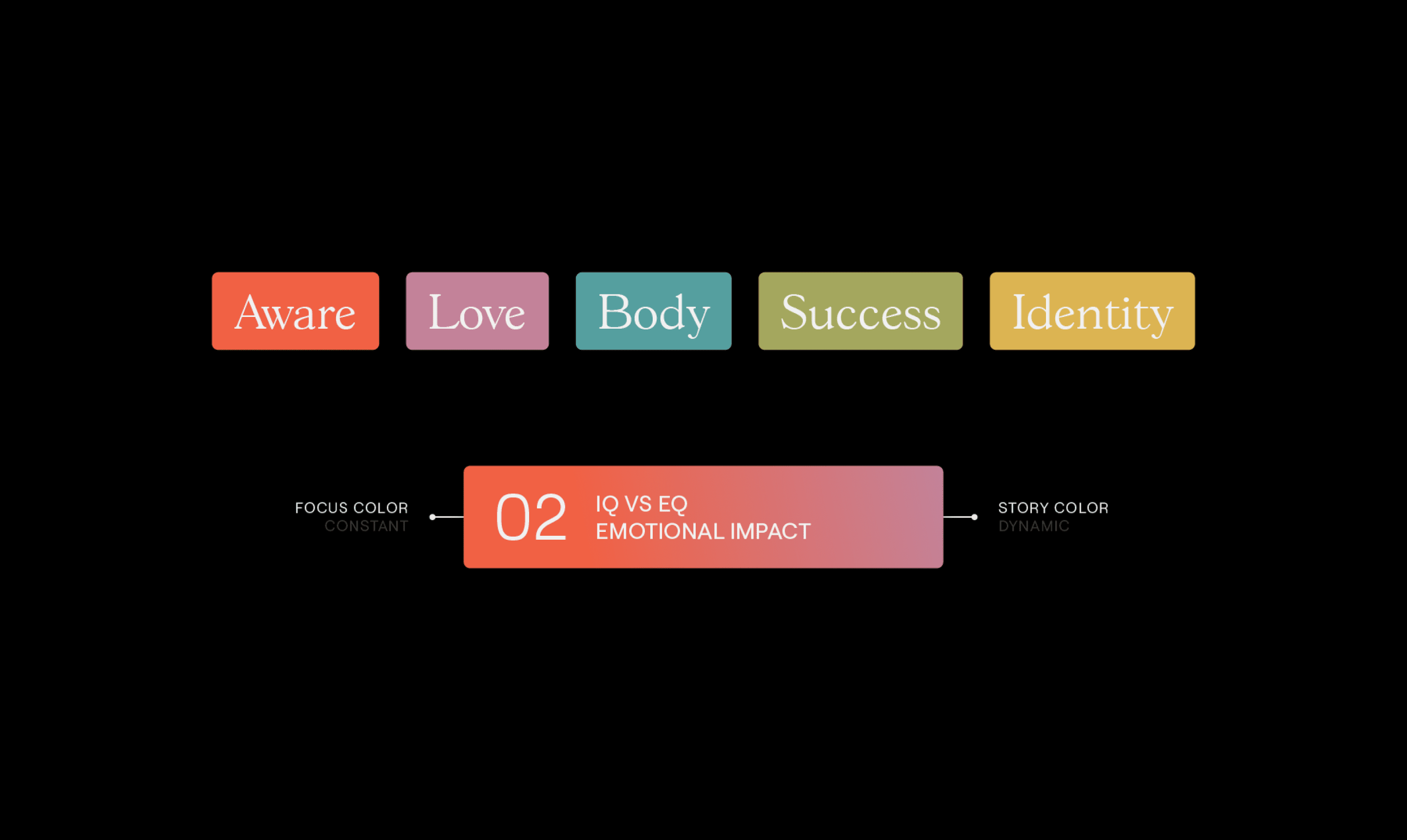 Our solution began with the visualization of a path, which comes to life as a core component of the brand and wordmark. The path element is a dynamic expression that represents the unique journey that belongs to each of us; our past experiences and our continual journey to self-awareness and growth. This new system allows for a broad range of expression across print and digital, but also celebrates the human spirit in conversation with its audience. Color follows suit, with a palette that feels unfiltered–rejecting insincere optimism.