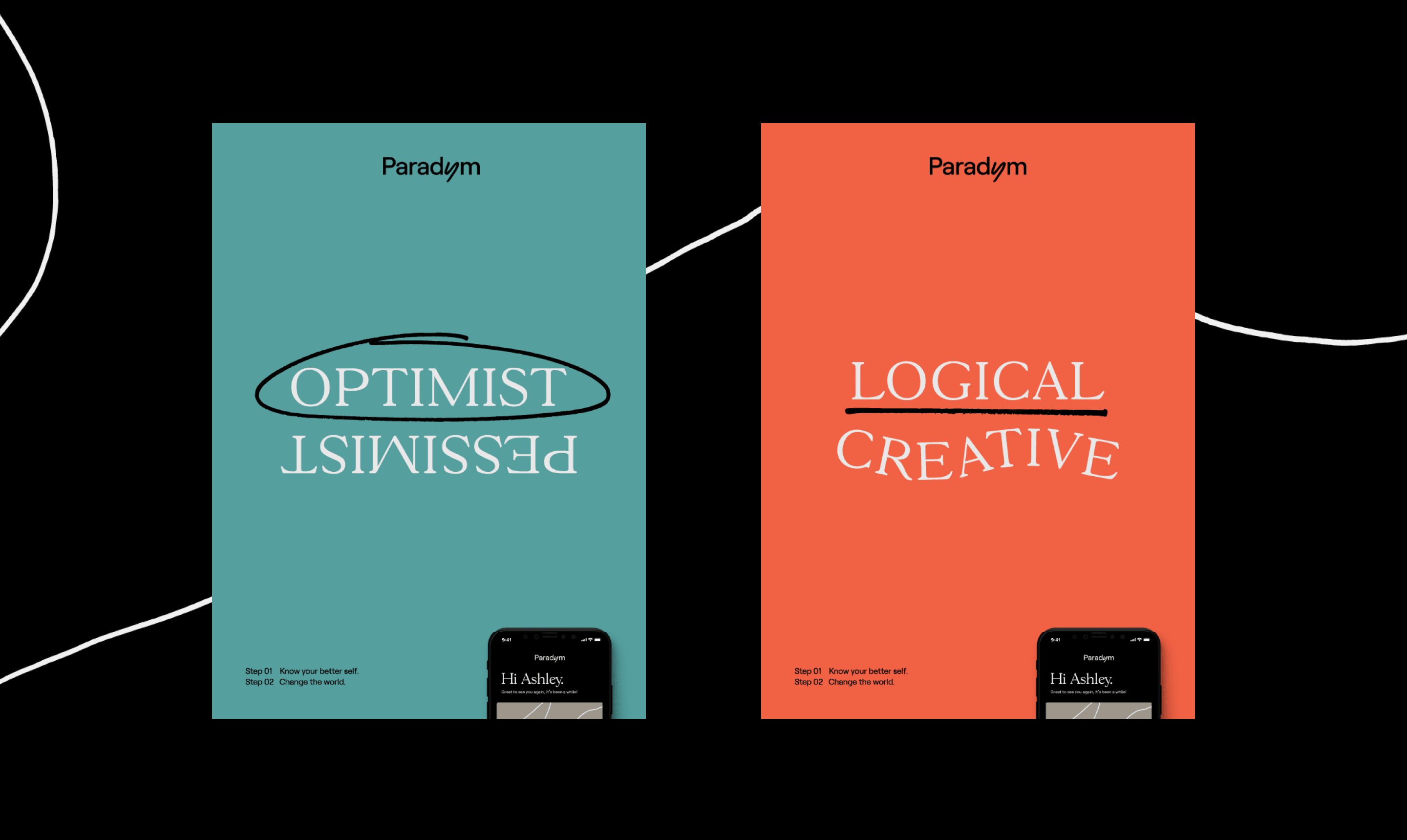 Thoughtful photography is employed throughout the brand, bringing to light moments of complex emotion and meaningful experience, and validating the blurred line between joy and sorrow. This celebration of humble and vulnerable truths is what sets Paradym apart as a radical leader in the mental-health space. Breaking Patterns. Changing Minds.